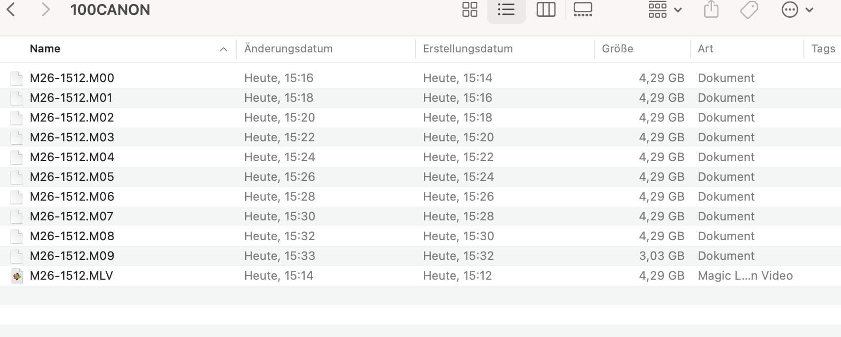 Can you pls tell me what´s going on here? Testing continuous recording in 1080 10bit and getting these strange files which mlv won´t import... ?